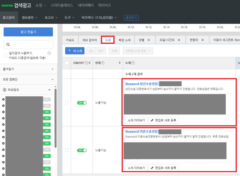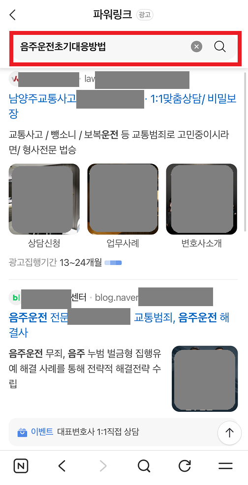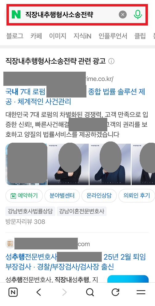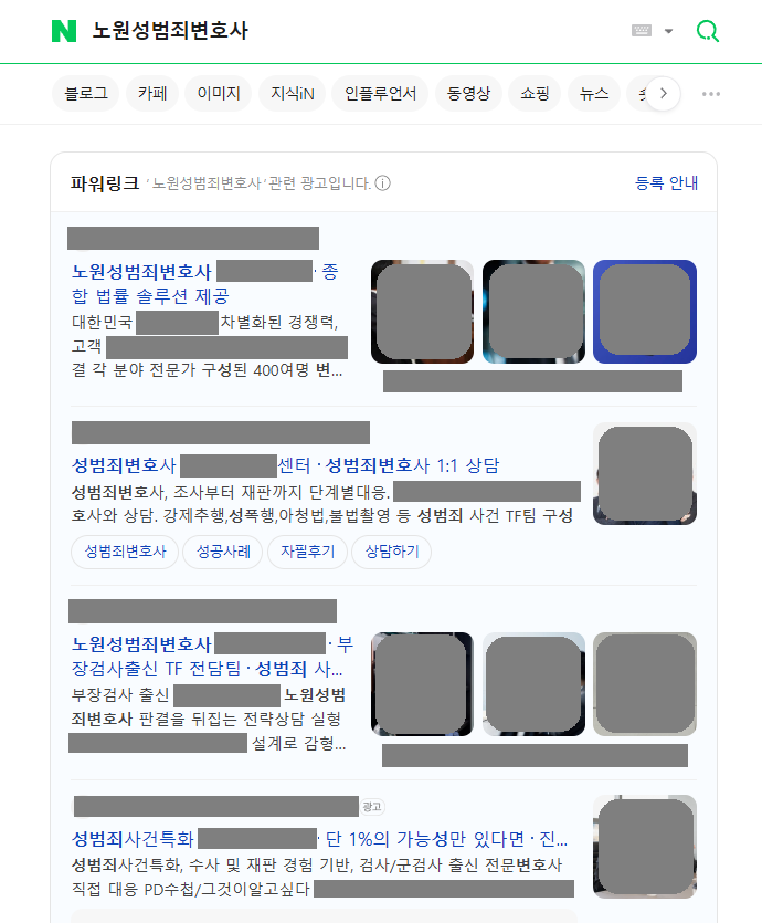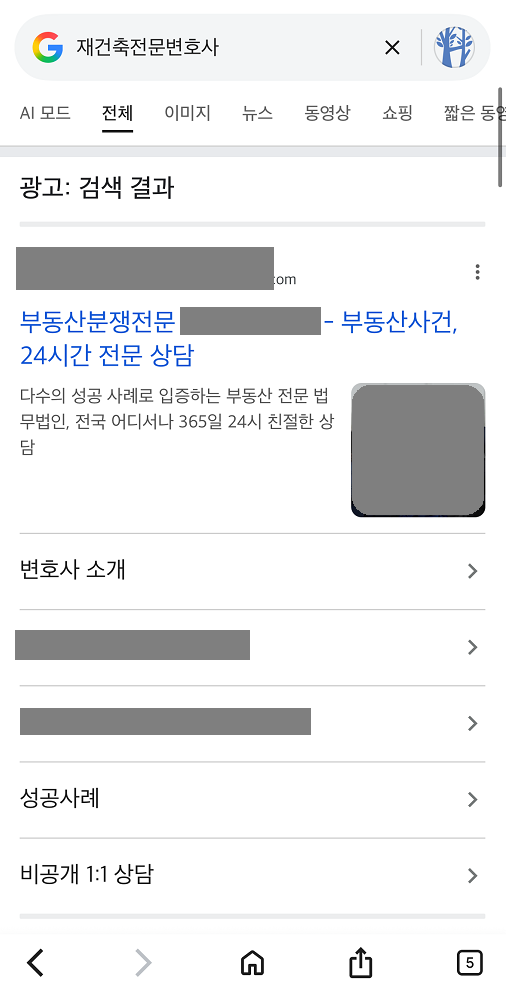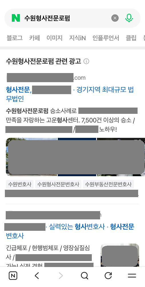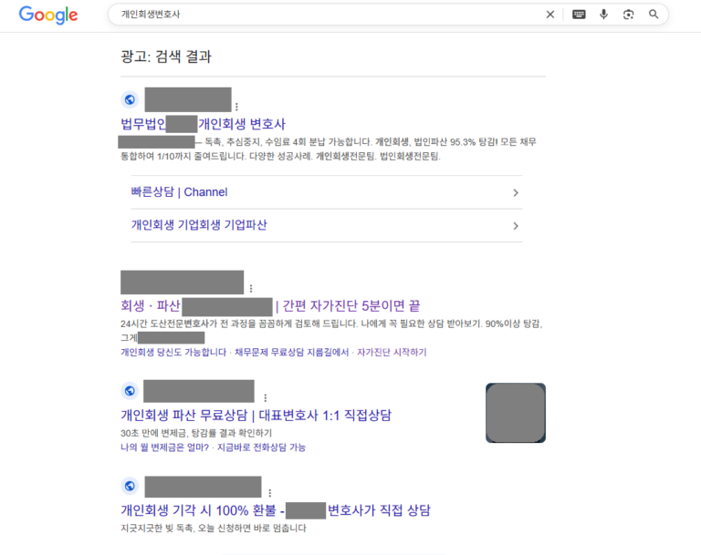 변호사 전문 광고대행사 커넥트리 키워드 검색광고 형사, 이혼, 상속 등 의뢰인이 처한 상황에 맞는 키워드에만 정확히 노출됩니다. 카톡 실시간 문의 네이버 검색광고 노출모습 이혼, 형사, 상속 등 인생의 중대한 문제를 겪는 의뢰인 10명 중 7명은 여전히 네이버에서 변호사를 찾습니다. 검색 결과 최상단 ‘파워링크’ 노출은 그 자체로 해당 법무법인의 규모와 신뢰도를 상징합니다. 구글 검색광고 노출모습 단순 키워드 검색을 넘어, 특정 법률 이슈에 관심을 보이는 사용자를 구글의 AI가 분석하여 광고를 노출합니다. 네이버의 과열된 입찰 경쟁을 피하면서도, 실력 있는 의뢰인을 상대적으로 저렴한 클릭당 비용(CPC)으로 확보할 수 있습니다. 검색광고 진행 시 아래 서비스를 제공합니다 커넥트리는 인원으로 승부하지 않습니다. 오직 결과로 말하는 대표 1인의 독보적인 마케팅 인사이트를 제공합니다. 세부키워드 추출에 집중합니다 법률 서비스 검색광고의 효율은 세부키워드에서 결정됩니다. 남들이 많이 검색하고 경쟁높은 키워드는 광고비용 부담으로 직결됩니다. 경쟁사에서 찾지 못한 키워드를 발굴하여 클릭단가를 비약적으로 낮추고 문의 효율을 끌어올립니다. AI 기반의 ADVoost 검색 기술 활용 클릭당 비용이 높은 변호사 키워드 특성상, 무의미한 순위 경쟁은 독입니다. ADVoost 기술은 수임 전환율이 높은 키워드를 자동으로 찾아 노출합니다. 애드부스를 통해 비약적인 광고비 절감 효과를 가져옵니다. 부정클릭방지 및 무효클릭 환불요청 동일한 IP에서 비정상적인 간격으로 반복 유입되는 패턴을 AI 기반 시스템으로 감지하여 즉각적으로 광고 노출을 제한합니다. 이미 소진된 광고비 중 부정클릭으로 의심되는 로그를 추출하여 매체사에 공식 이의제기를 진행, 소중한 광고비가 환급될 수 있도록 조력합니다. 광고소재 AB테스트 테스트를 통해 검증된 ‘1등 소재’에 예산을 집중 투입합니다. 소재 테스트는 짧게는 3개월 또는 분기별로 지속됩니다 철저한 데이터 분석 전환 추적 시스템 및 사이트 유입 데이터 시각화를 통해 끊임없는 광고 효율개선을 모색합니다. 커넥트리에서 아래 도구들을 적극 활용하고 있습니다. 구글애널리틱스(GA4)구글태그매니저(GTM)네이버 프리미엄 로그분석(전환추적)네이버 서치어드바이저(웹마스터도구)구글 서치콘솔(웹사이트 SEO최적화)스마트로그(IP추적) 어떤 광고를 해야할지 모르겠나요? 광고비 집행이 망설여진다면, 아직 확신이 없기 때문입니다. 커넥트리는 의뢰인의 예산과 목적에 맞춰 가장 효율적인 최적의 매체 믹스를 제안해드리고 있습니다. 지금, 커넥트리의 PDF파일 무료 견적서를 받아보세요. 카톡 실시간 문의